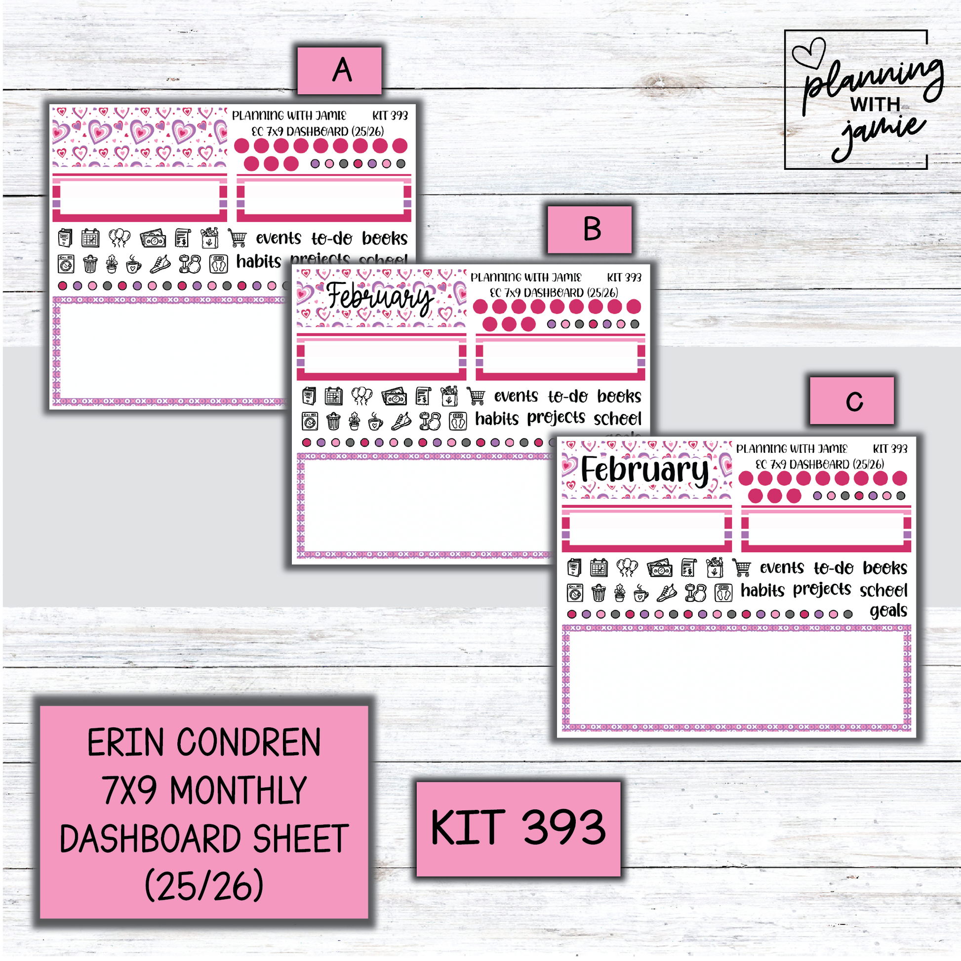 7x9 - Erin Condren Dashboard A (25/26 size) / FEBRUARY KIT 393 7X9 DASHBOARD A 25/26 FEBRUARY