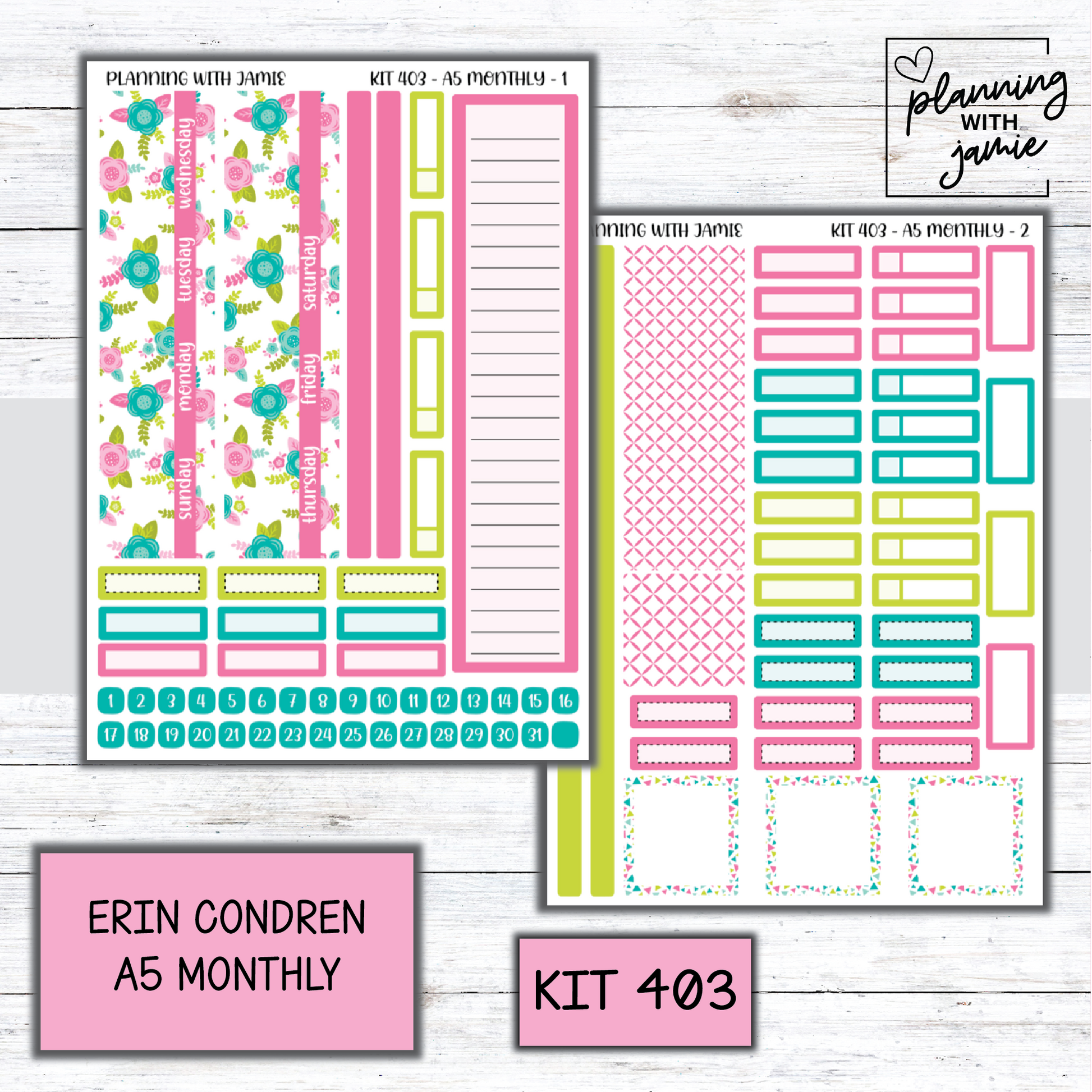KIT 403 Erin Condren 7X9 OR A5 Monthly Kit